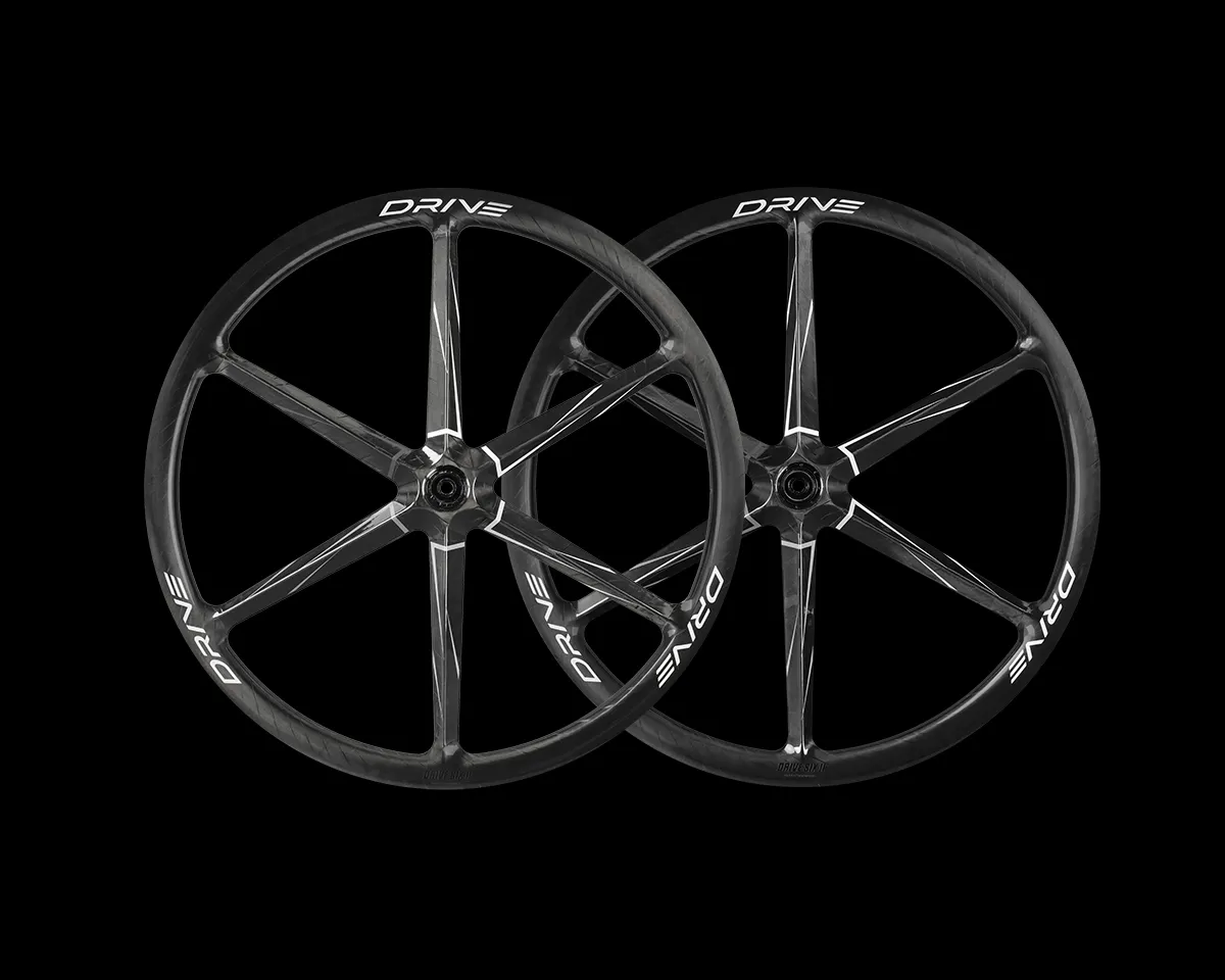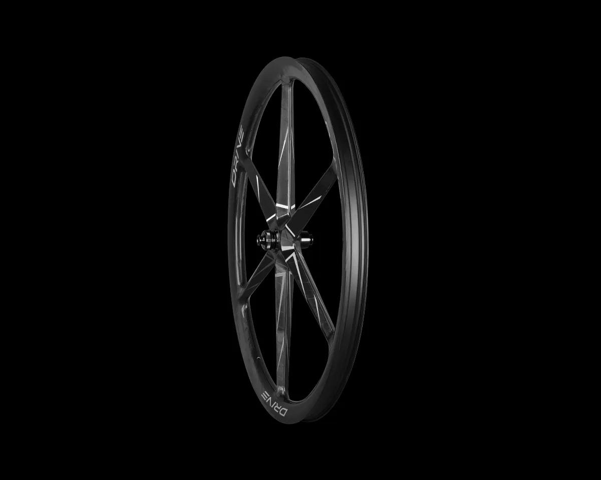 The Drive Six II combines striking aerodynamics with cutting-edge engineering. Its one-piece six-spoke carbon design maximizes stiffness and efficiency, delivering sharper cornering, faster acceleration, and power transfer beyond what steel-spoked wheels can achieve. Silver decals and a distinctive marbled finish make it as visually unique as it is performance-driven.